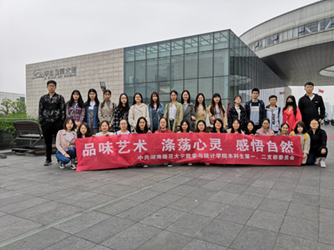 (通讯员舒青舟)4月21日上午9点,中共湖南师范大学数学与统计学院本科生第一、二支部在李自健美术馆及洋湖湿地公园开展了“品味艺术、涤荡心灵、感悟自然”主题党日活动。此次活动由支部书记资艳玲老师和郭建老师带队,支部党员及预备党员32人参加。