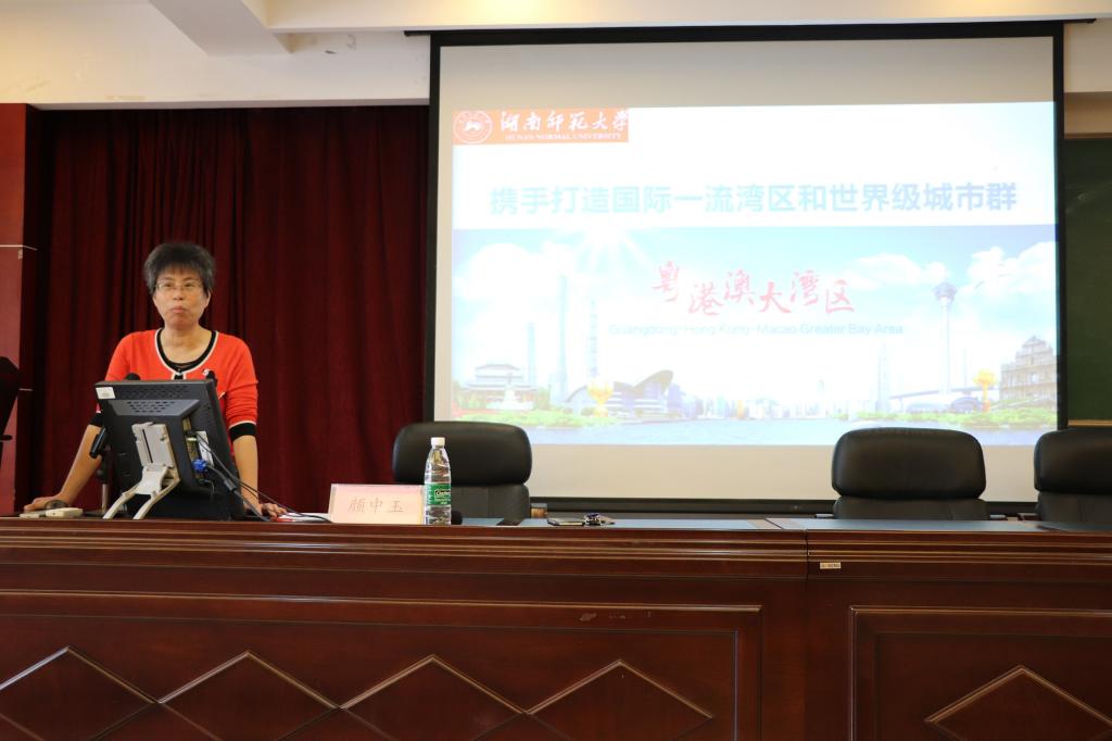 此次讲座的主题是“打造国际一流湾区和世界级城市群”,讲座围绕两个问题展开,即为什么要建设粤港澳大湾区和怎样建设粤港澳大湾区。颜中玉指出建设粤港澳大湾区的四点必要性:湾区是世界经济增长极和技术创新的领头雁、湾区建设是丰富“一国两制”实践内涵的重大举措、湾区建设是提升对外开放水平的重大选择和湾区建设是新时代推动全面开放新格局的重大战略。她表示粤港澳大湾区拥有优越的地理位置、超群的经济实力和齐备的创新因素的优势,为它的进一步建设奠定了基础。
