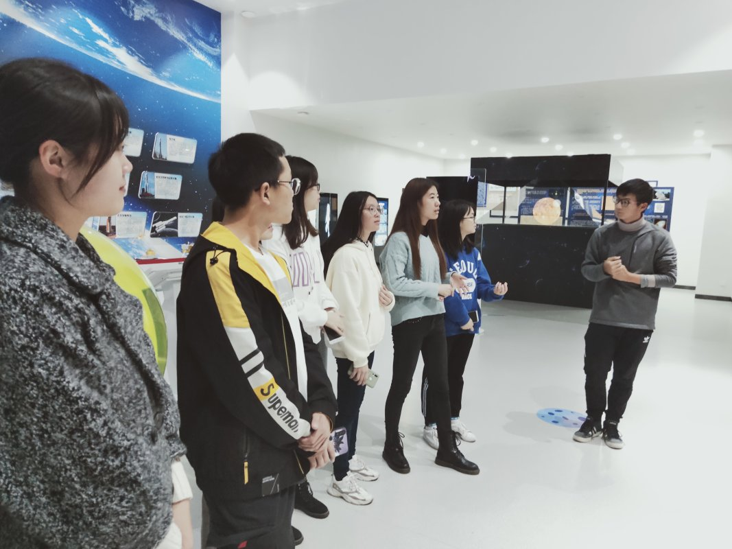 活动伊始,小组成员于格物楼大厅集合,一同前往校史馆。在校史馆内,小组成员们有序地进行了参观,认真学习了解了学校的发展历程和校区分布。随后,小组成员来到了学校天文馆,在讲解员的引导下分楼层地进行了游览参观。讲解员就各个部分分别为同学们讲述了天体相关的专业知识、九大行星之间的差异及星云的循环变换等,同时积极地解答了同学们的疑惑。
