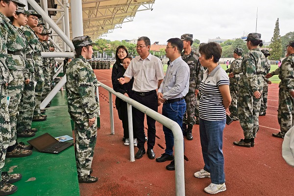 周俊武一行在南院校区军训场