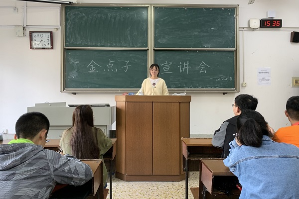 (通讯员 穆文卿)为培养学生创新思考能力,调动其参赛积极性,10月8日下午,数学与统计学院(以下简称“数统院”)团委青年创新创业指导中心(以下简称“青创部”)于格物楼402教室组织召开“金点子”大赛宣讲会。会议由青创部部长张璐主持,第九届金点子大学生创意大赛获奖者李文婕、邓元圆担任主讲人。