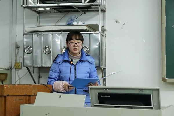 桌游与国际象棋联合社团监事长肖天晴、双星艺术团理事长兼团支书茹贞贞作为代表发言。茹贞贞分别就社团四大机构进行介绍,肖天晴对各项机构职能的不同进行说明。校学社管监察部副部长张子涵作总结发言。