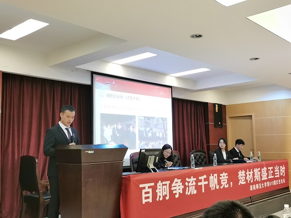 以各时代湖南名人名迹为切入点,四位主讲人分别从精神特质、思想内涵、历史继承、时代价值四个方面阐述当代高校学子弘扬湖湘精神、争做新时代新青年的具体方法。在问答交流环节中,学生观众向主讲人提问,交流自己的观点与看法。