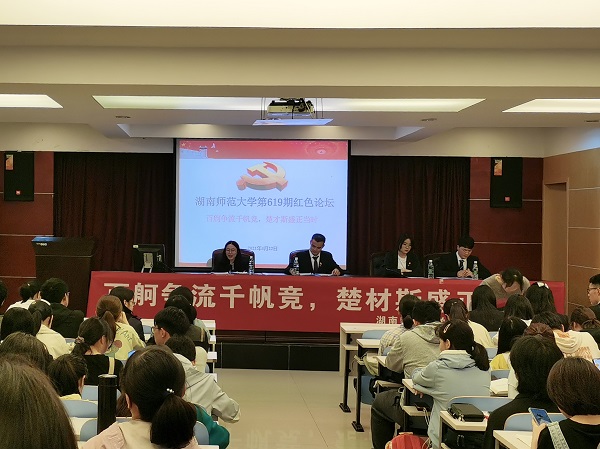 (通讯员 匡家慧 章寒露)为深入学习习近平总书记在湖南考察调研时传递的重要讲话精神,4月22日晚,数学与统计学院(以下简称“数统院”)于格物楼309报告厅举办第619期红色论坛。此次红色论坛活动以“百舸争流千帆竞,楚材斯盛正当时”为主题,数统院团委书记、2019级辅导员杜涛参加活动。