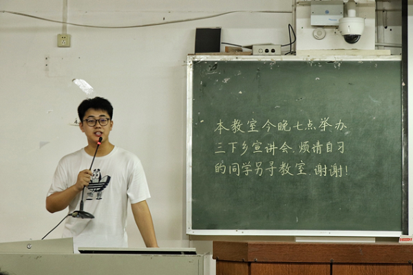 (通讯员 魏舒妮 李静蕾 穆文卿)5月13日晚,数学与统计学院(以下简称“数统院”)于格物楼409教室举办三下乡宣讲会,此次宣讲会由数统院团委社会实践部部长周胤梓主持。