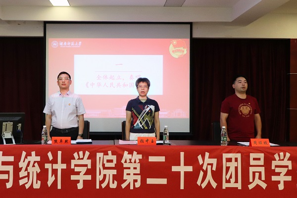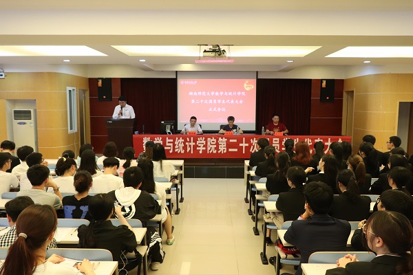 (通讯员 郭校语 高俊威 匡家慧)6月17日下午,数学与统计学院(以下简称“数统院”)于格物楼309报告厅举办第二十届团员学生代表大会正式会议。校团委副书记周旺蛟,数统院党委书记颜中玉,党委副书记熊卓然出席此次会议。会议由数统院团委书记、2019级辅导员杜涛主持。