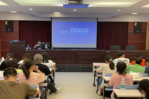 (通讯员 魏舒妮 李静蕾 匡家慧)6月21日下午,数学与统计学院(以下简称“数统院”)于格物楼309报告厅开展以“坚持多边主义,打造全球治理新格局”为主题的形势与政策课程。马克思主义学院教授丁建军担任主讲人。