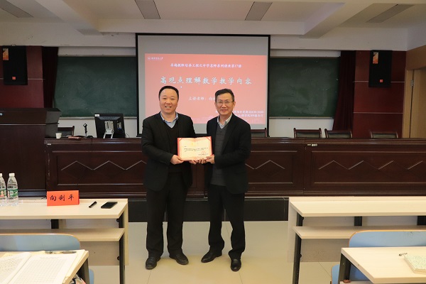 (通讯员 张艳鑫 钱昱锦 何粤)11月26日上午,数学与统计学院(以下简称“数统院”)于格物楼309报告厅开展“卓越教师培养工程”之中学名师系列讲座第十七讲。此次讲座以“高观点理解数学教学内容”为主题,由长沙市岳麓区教师发展中心主任、中学数学教研员向利平主讲,数统院数学系副主任袁智强主持。