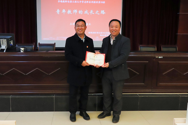 (通讯员 穆文卿 钱昱锦 匡家慧)12月3日上午,数学与统计学院(以下简称“数统院”)于格物楼309学术报告厅开展“卓越教师培养工程”之中学名师系列讲座第十八讲。此次讲座以“青年教师的成长之路”为主题,宁乡市初中名校长工作室首席名校长、紫金中学党支部书记、校长潘道正担任主讲。此次讲座由数统院数学系副主任袁智强主持。