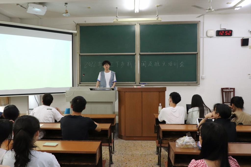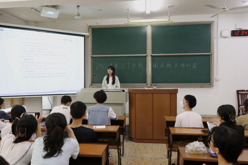 (通讯员 郑智文 李静蕾 郭校语)5月31日中午,为促进暑期“三下乡”社会实践活动的顺利展开,数学与统计学院于格物楼205教室举办“三下乡”新闻推文培训会,数统院青年传媒中心新媒体部部长曾皓楠、新闻采编部干事曹慧娟担任主讲人。