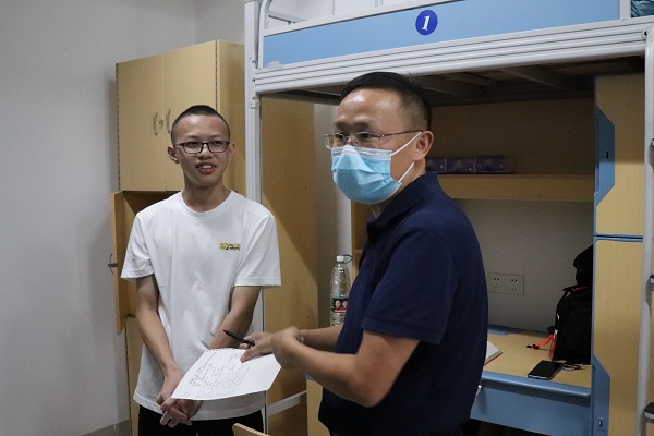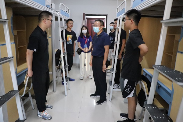 深入学生宿舍视察期间,新生们依次向领导老师做自我介绍。李利平代表数统院对新生的到来表示热烈的欢迎,并了解了新生宿舍硬件使用及寝室人员到校情况。他强调,同学们要把安全问题放在首位,晚上不要单独外出。
