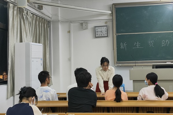 (通讯员 闫沛 曹慧娟)10月21日晚,为向2022级新生宣传介绍资助政策,数学与统计学院(以下简称“数统院”)于格物楼202教室举办新生资助宣传会。此次会议由学生会权益部负责人王宁主持,2022级建档生、权益委员以及权益部所有成员参与此次会议。