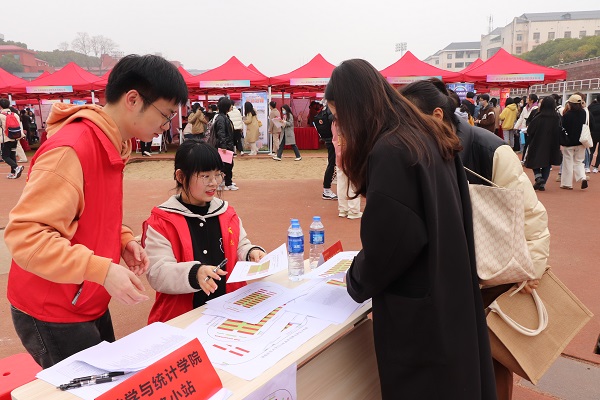 (通讯员 蒲佳莹 章怡 石卓)3月4日上午,由湖南省教育局主办、我校承办的2023届师范类高校毕业生春季招聘会于北院田径场举办。为保障招聘会的顺利开展,数学与统计学院团委青年创新创业指导中心(以下简称“数统院青创中心”)组织“雷锋小站”志愿活动,助力招聘会。数统院团委学生副书记曾皓楠担任负责人,共五名志愿者参加活动。