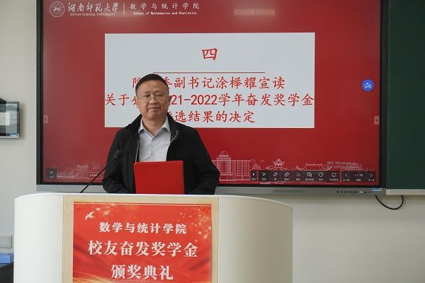 (通讯员 蒲佳莹 曾轩普 石卓)5月8日下午,数学与统计学院(以下简称“数统院”)于格物楼409教室举行2021-2022学年校友奋发奖学金颁奖典礼。2020级统计班王梓主持典礼。