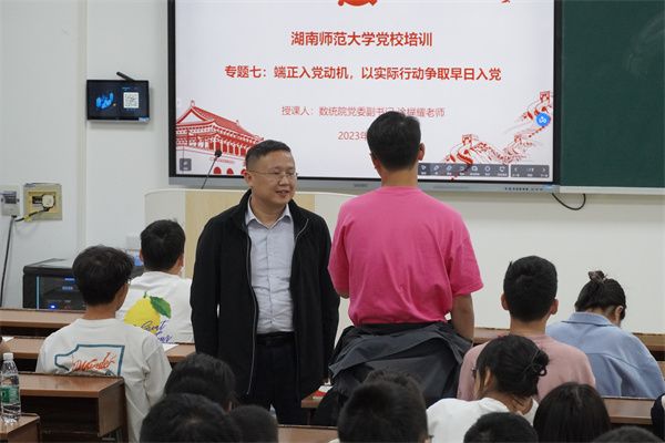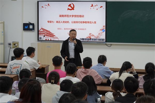 (通讯员 黄美绮 吕倚影 曹慧娟)5月8日晚,数学与统计学院(以下简称“数统院”)于格物楼409报告厅开展第74期入党积极分子党课培训。此次培训以“端正入党动机,以实际行动争取早日入党”为主题,数统院党委副书记涂榉耀担任主讲人。