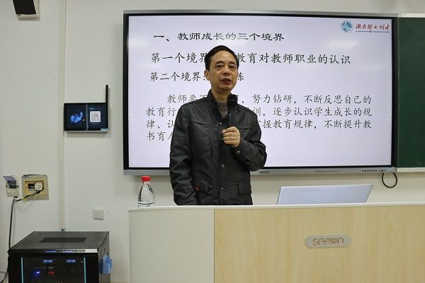 赵优良向同学们介绍教师成长的三个境界