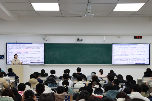 (通讯员 胡铮 李林宣 唐亘嫣)为加深数统学子对数学竞赛的了解,并激发同学们参加竞赛的积极性,12月1日晚,数学与统计学院(以下简称“数统院”)于格物楼409教室举办了“第十六届全国大学生数学竞赛暨2024年湖南省大学生数学竞赛”动员大会。数统院数学系副教授崔登兰担任主讲人。2023级数学与应用数学一班、二班、三班,大数据班,世承书院天问班同学参与大会。