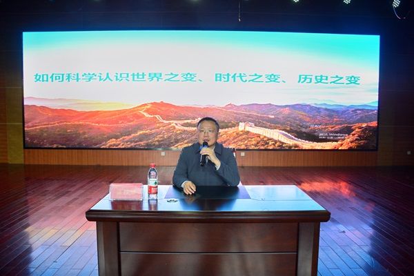 涂榉耀围绕“‘三个之变’变的是什么”、“中国如何应对‘三个之变’”、“当代大学生如何应对‘三个之变’”三个方面向同学们系统地阐述了国际体系和国际秩序的深刻调整以及数字经济的快速发展。同时,他强调,处于这个机遇与挑战共存的时代,吾辈青年肩负着强国建设、民族复兴的历史重任,要践行青年使命与担当,推动构建人类命运共同体。
