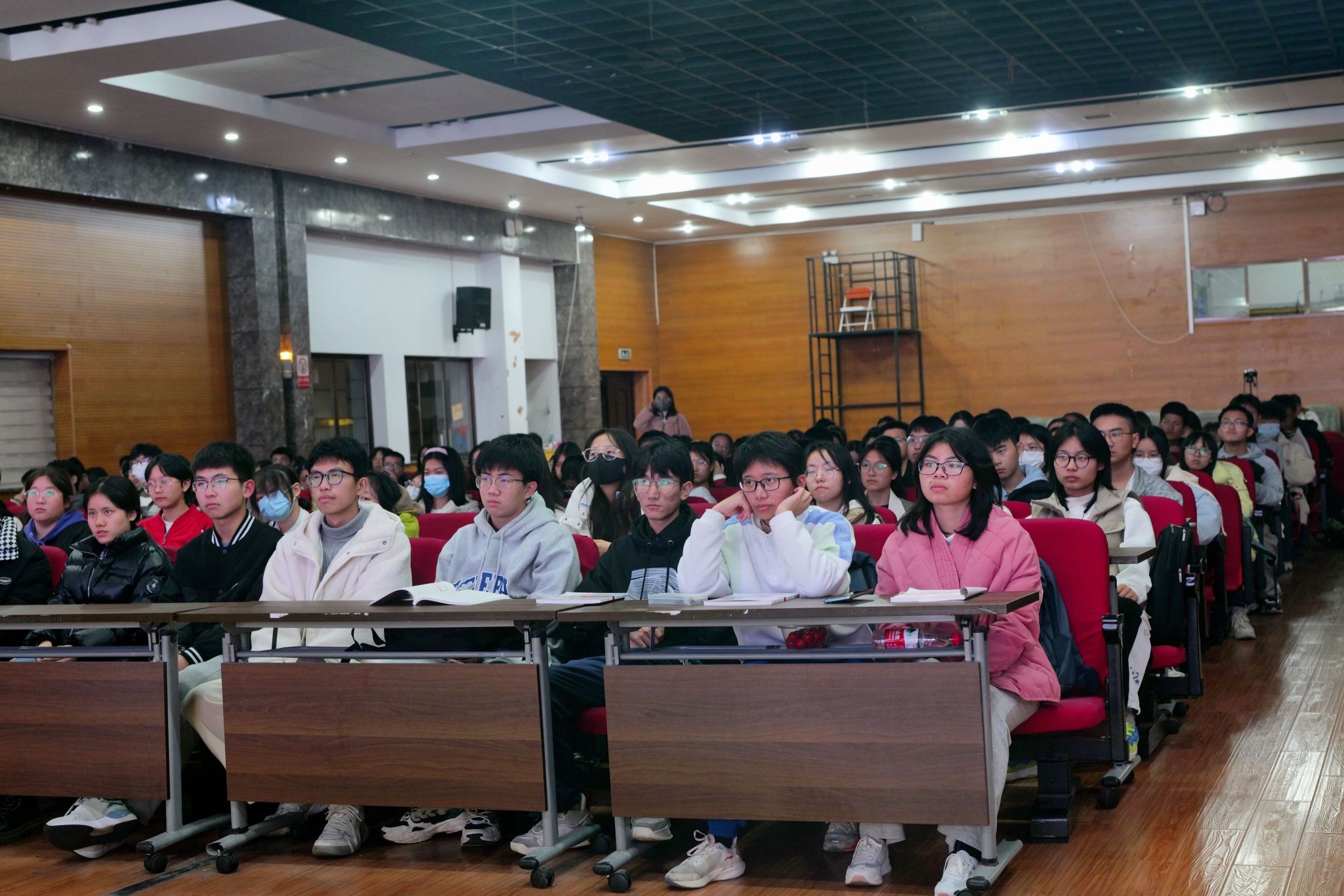 (通讯员 汤誉琳 周小轩 唐亘嫣)12月6日晚,数学与统计学院(以下简称“数统院”)于江边活动中心开展2023级形势与政策课程,此次课程以“正确看待我国经济发展面临的挑战和优势”为主题,由数统院党委书记颜中玉担任主讲人,数统院2023级全体本科生参与此次学习。