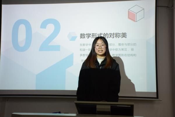 梅婷从数学语言的简洁美、数学形式的对称美、数学内容的和谐美、数学思想的奇异美这四个方面向同学们诠释她对“数学之美”的理解,并鼓励数统学子主动发掘并感悟数学的美。