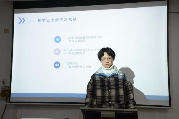 粟向韬概述了数学学科的发展历程,讲解了古代文明、中世纪、近代与现代四个时期的典型数学发现与改革创新,并着重介绍了数学史上的“三次危机”。随后,粟向韬介绍了具有重要地位的数学家及其里程碑式的发现,如:圆周率、毕达哥拉斯定理、微积分等。同时,他也向到场学生讲解数学领域的最近发展与应用前景并呼吁同学们热爱数学,研究数学。