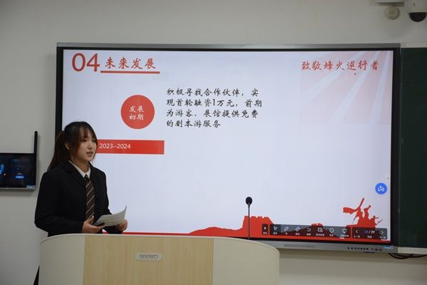 比赛过程中,各个团队负责人围绕项目背景、项目介绍、营销策略、财务规划等方面进行了具体介绍;评委们针对各组的汇报情况,从项目定向、项目融资、技术研发、团队协作、风险预估等多方面进行提问和评价,同时为项目成果的进一步优化完善提出了切实的建议。