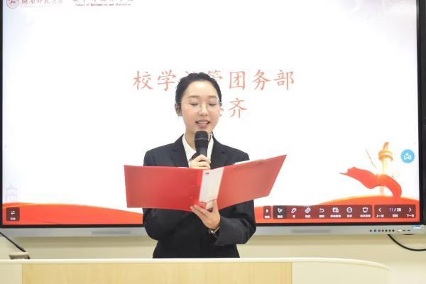 学生干部发言完毕,各评议代表阅读书面述职报告,并开展线上民主评议。随后,涂榉耀进行总结发言,他充分肯定了全体学生干部的工作成效,并勉励与会学生以优秀干部为榜样,提升综合素质,实现全面发展。