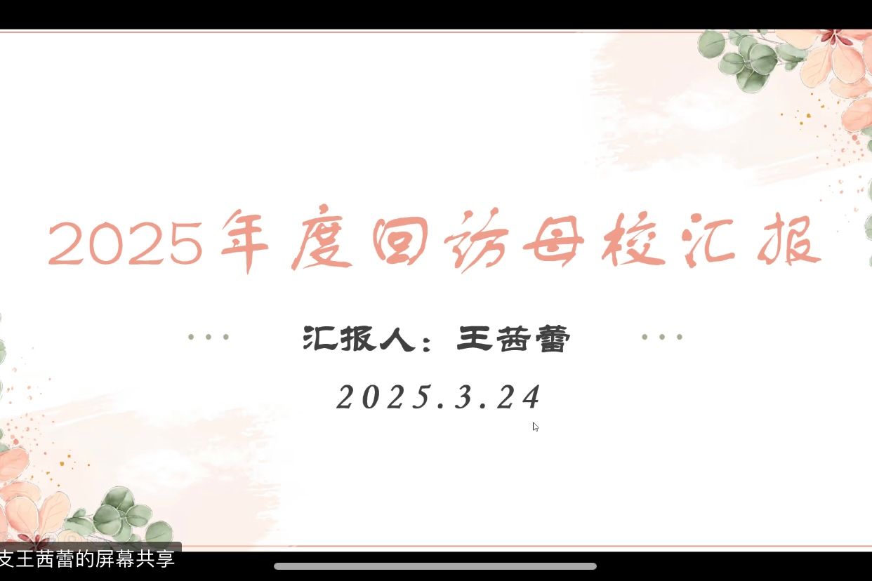 主讲人王茜蕾通过演示文稿,分享了重返母校开展年度回访活动的学习历程与成长感悟,表达了对母校培育之恩的感激。王茜蕾提到,母校多元化的教学资源和实践平台为其学术能力的提高、领导力发展提供了重要支撑。