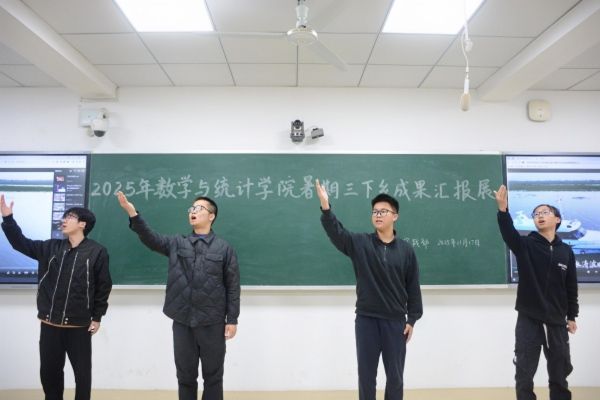 (通讯员 王亦言 迟薪格 罗清奕)11月17日下午,数学与统计学院(以下简称“数统院”)于格物楼409教室举办2025年三下乡实践成果汇报会。数统院党委书记颜中玉、党委副书记涂榉耀、2022级辅导员李师澳、2023级辅导员肖惠卿、2024级辅导员刘美、2025级辅导员许劲晗参会。