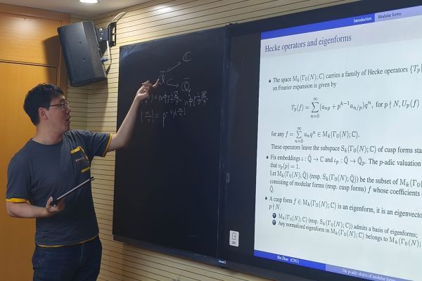 讲座以“模形式的p进斜率”为主题。赵斌围绕模形式的p进斜率展开,拆解由Bergdall与Pollack提出的“幽灵猜想”证明中的核心策略,同时分享该猜想在算术领域的重要应用。讲座中,主讲人结合专业内容,梳理模形式相关理论的发展脉络,将抽象的数学概念与前沿研究成果相结合,帮助在场学生理解该猜想的学术价值与研究意义。