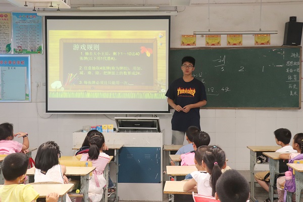 (通讯员 张袁媛 陈思兵)7月12日上午,湖南师范大学数学与统计学院(以下简称“数统院”)青年传媒中心赴长沙市望城区茶亭镇茶亭小学第七季暑期社会实践团24点课程开课,此课程由实践团队员刘建廷主讲,开办此门课程的为三、四年级。