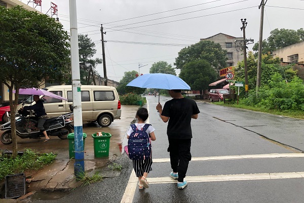 老师与家访学生一同前往学生家中