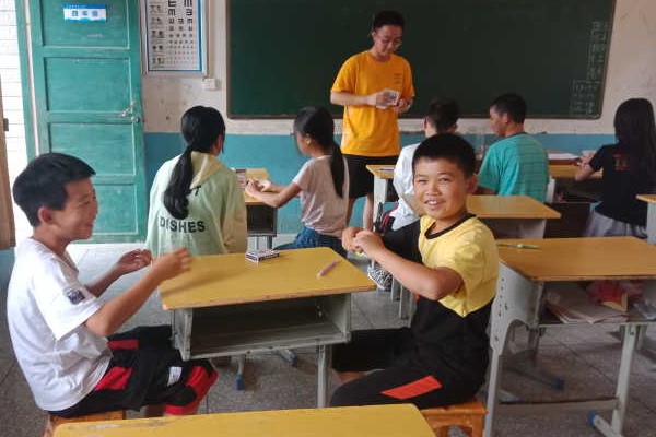 (通讯员 冯振声 杨子怡 李丽霞)7月10日上午,湖南师范大学数学与统计学院(以下简称“数统院”)学生会赴邵阳市新邵县暑期社会实践团(以下简称“绿光一夏”)开展了趣味魔术课,由“绿光一夏”队员钱奕章进行教学。