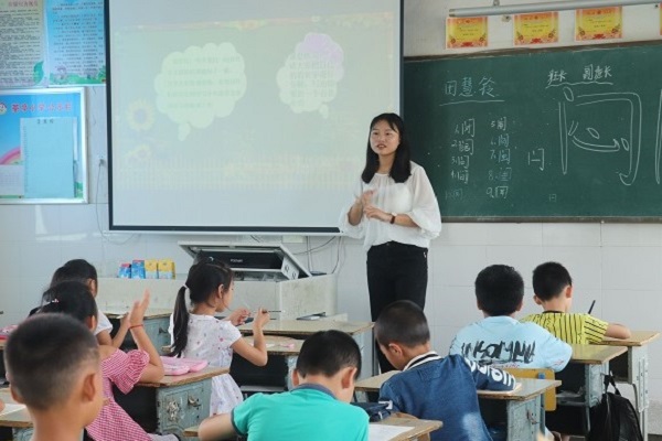 (通讯员 刘环珠 陈思兵)7月11日上午,湖南师范大学数学与统计学院青年传媒中心赴长沙市望城区茶亭镇茶亭小学第七季暑期社会实践团成员田慧玲于三年级教室开办趣味语文课程。