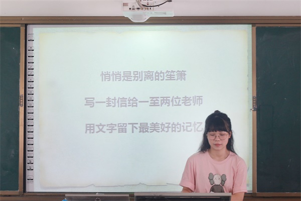暑期实践活动正式开展以来,十多天的朝夕相处让队员和学生之间的感情逐渐加深,截至7月22日,实践活动将接近尾声。为了给队员课上和课下的教学反馈以及学生对队员的真实想法,朱亦融开展以“写给老师的一封信”为主题的作文课。课堂伊始,朱亦融整理了队员的个人照片供学生参考。朱亦融放映剪辑好的暑期实践视频,与学生一同回顾自开营以来的点滴。
