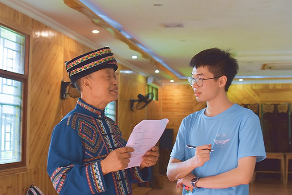 邵阳市共有国家级非物质文化遗产项目14项,国家级传承人13人。在当地居民的热心指引下,团队找到了非物质文化遗产“木叶吹歌”代表性传承人杨光清。杨光清表示,在他的一生中只做了两件事:一是将木叶吹歌这门技艺吹到了国家档案里;二是不断地对苗族文化进行挖掘整理,写成文章向外推广。他说,木叶吹歌是音乐的活化石,具有浓郁的乡土气息,是艺术的结晶、情感的播放器。