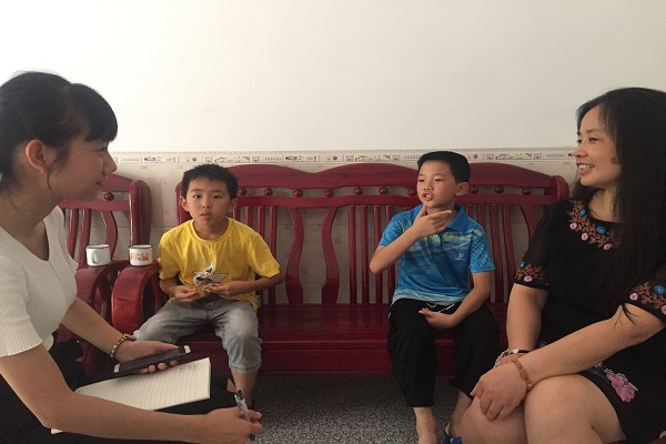 (通讯员 甘婷 谭瑞杰)7月19日下午,湖南师范大学数学与统计学院(以下简称“数统院”)青年传媒中心赴长沙市望城区茶亭镇茶亭小学第七季暑期实践团四年级小组进行了第二次家访,此次家访学生是四年级班长朱成昊,受访对象为朱成昊的妈妈。四年级副班主任唐圣晟负责与家长交流,谭瑞杰全程拍照记录。