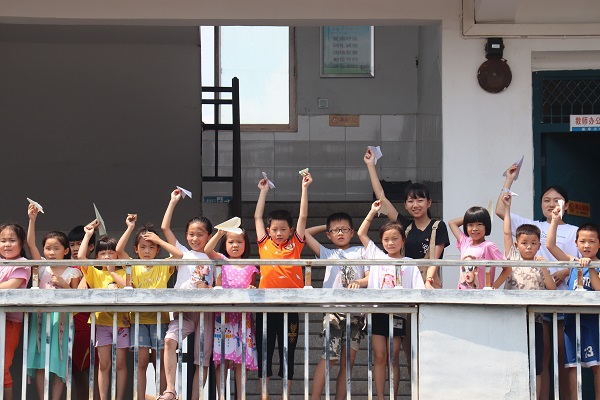 (通讯员 张袁媛 陈思兵)7月22日下午,湖南师范大学数学与统计学院(以下简称“数统院”)青年传媒中心赴长沙市望城区茶亭镇茶亭小学第七季暑期社会实践团组织学生放飞“梦想纸飞机”,实践团队长谷珊担任主要负责人,各班班主任、副班主任协调配合工作进行。