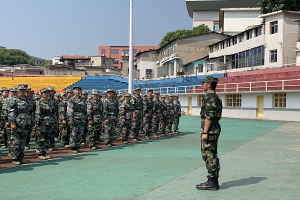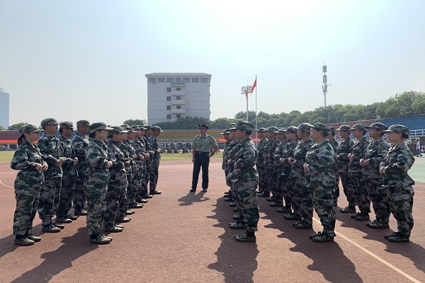 (通讯员 王伟华 范瑞临 郑胜)9月14日上午,数学与统计学院(以下简称数统院)19级本科新生于田径场内接受教官关于文明礼仪的教导。