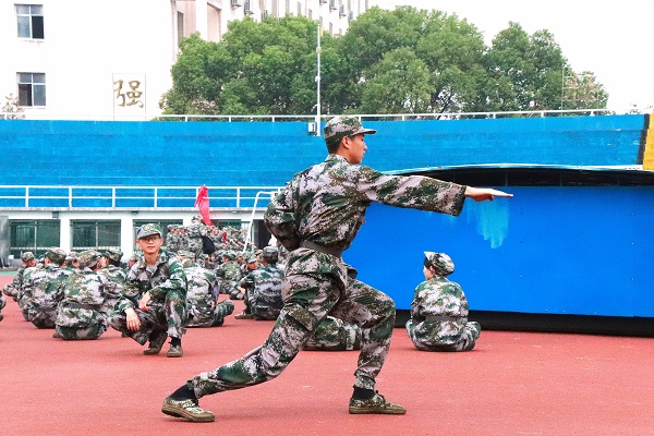训练场上,教官们分解着擒敌拳的动作,对每一个细节进行展示和教学,他们流畅的动作、稳健的步伐、敏捷的身形获得了新生们的连连赞叹。与走方阵的学生们一样,擒敌拳方阵的新生也要在9月23日进行汇演。在观看完教官的表演后,来自2019级信息班新生徐远航表示自己压力倍增,也希望自己可以做到更好。
