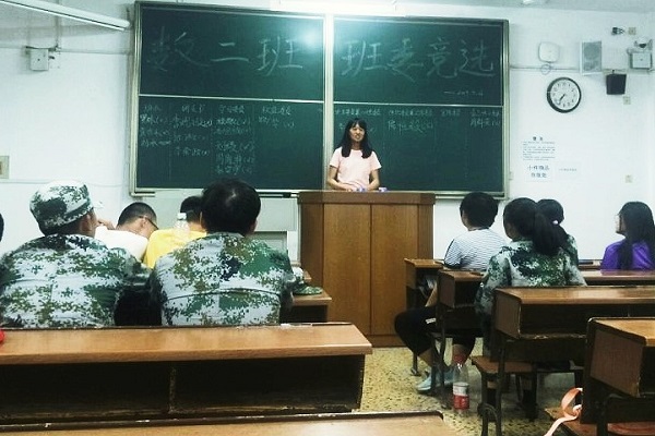 由35位同学组成的班集体中,共20位参与竞选。从参选人数上,可以看见同学们对于参与班级管理的积极性。尽管在9月10日的新生见面会上,同学们还彼此不熟稔,不敢上台介绍自己。但此次参与班委竞选的同学们已经能依次主动登台,向台下同学们大方介绍自己,阐述自己竞选职务的优势,用幽默的言谈或独特的才艺吸引同学们的选票。李熠璇和刘姣上台两次,用演讲和才艺表演为自己拉票。她们谈到自己在高中担任过的职务,取得过的奖项与成绩。刘姣用英文背诵了一段奥巴马演讲的内容,赢得了阵阵掌声。