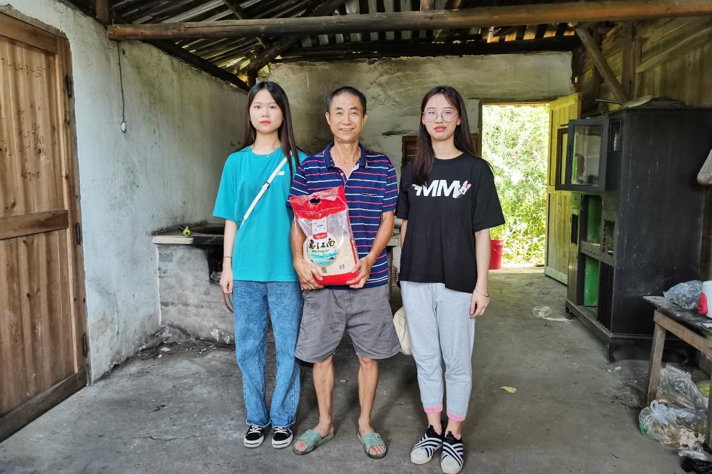“薪火实践”队为贫困户送上一袋大米以示慰问