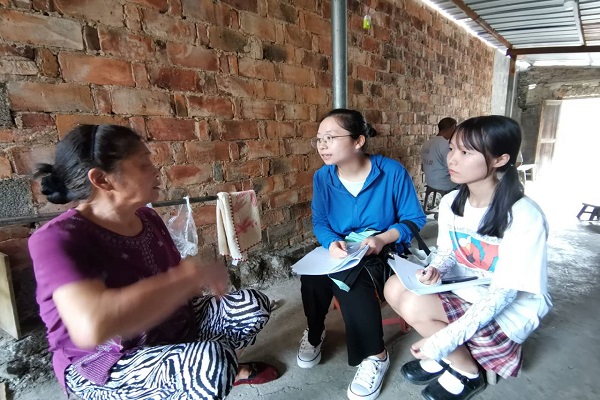 暑期社会实践团负责线下调研的梁群琦、游寰、杨珊珊等五名队员共同前往已联系的两个村落进行调研。队员就扶贫工作在村内的开展进程的情况,村民对扶贫政策落实的公平性的满意程度,疫情影响下的家庭收支情况,对未来不走返贫路的建议与想法等问题进行询问。根据调研内容的反馈以及调研问卷的数据整理结果,队员们获取了部分村民对扶贫工作的满意程度的重要信息,了解到村民对接下来生活质量与生活走向的不同期待。