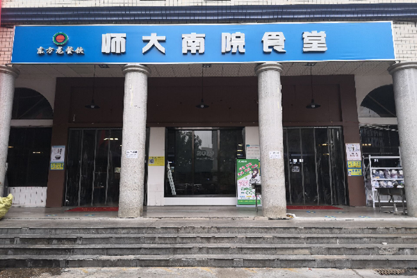 南院食堂与南院田径场毗邻,师生就餐便利。食堂饭菜种类多样,可满足各地学生需求。食堂内灯光柔和,空间广阔,环境清洁,设施齐全。为防护疫情,保障学生身体健康,饭桌上贴有座位说明,提示学生保持距离;食堂门口的两边设有两个洗手点,配有洗手液,以供学生洗手。南院食堂推出活动“买早餐前一百名送饮料”以迎接新生,学生用餐热情高涨,更多师生到南院食堂就餐。