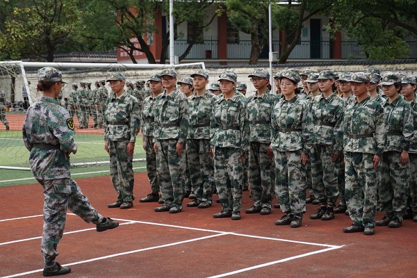 队列方阵训练的主要内容是正步走,这要求同学们上身直立,两腿绷直和两脚着地用力,队伍遵循一定节奏整齐前进。特色方阵训练的主要内容是擒敌拳,擒敌拳共有16动,整套动作要求快、狠、准、稳,以腿法见长,手脚并用、摔擒合一、架高势小、自然实用,力道十足。拉拉队方阵训练的主要内容是训练方阵口号,为队列方阵与特色方阵队员营造气势,助力加油。
