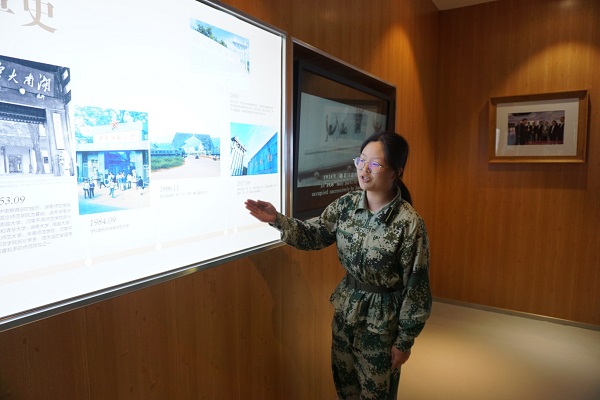 姜可儿表示,担任校史馆讲解员责任重大,并且为自己能够引导新生了解我校历史感到荣幸。