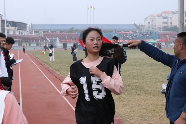 3000米是历史悠久且开展普遍的中长跑运动,是一项需要速度和耐力的综合性项目。赛前,志愿者为赵佳华备好水和糖果,帮助其做好必要的热身工作。比赛过程中,赵佳华始终保持匀速,在最后一百米阶段完成冲刺越过终点线。
