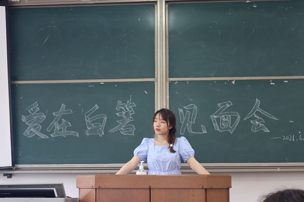 经过面试,“爱在白箬”暑期社会实践团集结了来自数统院、医学院、外院的小伙伴。2019级信息与计算科学专业李惟一担任队伍队长。会议伊始,她首先对队员们的到来表示欢迎,接着介绍了此次实践活动的相关分组安排与注意事项。随后,各位队员轮流上台分享自己的爱好与特长。最后,李惟一解答了队员们对白若中学生活与教学环境的疑惑,她表示,“爱在白箬”队是一支传承的队伍,十分有信心把这支队伍建设得越来越好,给白箬的学生们带来更多的新体验。