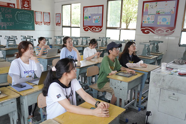 (通讯员 姚程 付潇靓 梁群琦)7月6号上午,湖南师范大学数学与统计学院团委赴长沙市望城区茶亭镇暑期社会实践团(以下简称“茶亭同行”)全体队员在茶亭小学教室进行课程试讲。