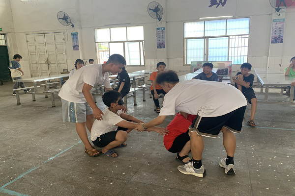 (通讯员 曹婧奕)7月7日上午,湖南师范大学数学与统计学院(以下简称“数统院”)学生社团管理服务中心赴邵阳市城步苗族自治县暑期社会实践团(以下简称“师闪志风”)成员陈铮、王艺沁、黄杰辉于西岩镇初级中学食堂开办素拓课程。